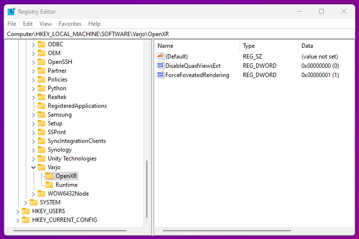 HKEY _ LOCAL _ MACHINE \ SOFTWARE \ Varjo \ open xr